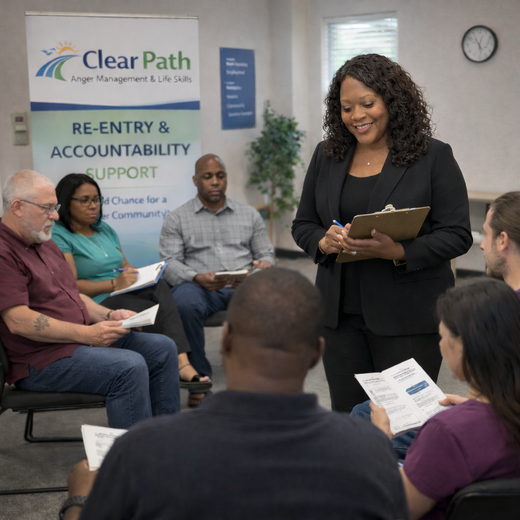 Clear Path’s primary program is a structured 8-week anger management cohort delivered in live, instructor-led group sessions.